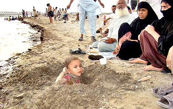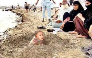 استعمال کرنا شروع کر دیتے ہیں۔ کوئی شوگر کے علاج کیلیے دم کراکے انگور کھا رہا ہوتا ہے تو کوئی کینسر کیلیے حکما کی چوکھٹ پر پڑا ہوتا ہے۔ کوئِی بلڈ پریشر کے علاج کیلیے تعویز گنڈے کرا رہا ہوتا ہے تو کوئی ہیپاٹائٹس کیلیے ہومیوپیتھک ڈاکٹروں کے ہتھے چڑھا ہوتا ہے۔ اس تصویر کو دیکھیں والدین نے پولیو کی مریض بچی کو سورج گرہن والے دن زمین میں گاڑ دکھا ہے۔