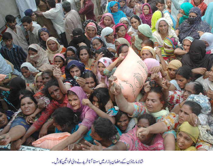 رہی اوپر کی تصاویر تو ہمارے ذرائع ابلاغ ہمیشہ تصویر کا اپنی مرضی کا رْخ دکھاتے ہیں ۔ میں نے پچھلے سال سستا آٹا تقسیم ہوتے دیکھا تھا ۔ باوجود منتظمیں اور پولیس کی پوری کوشش کے کوئی قطار بنانے کو تیار نہ تھا اور جس کا زور چلا اس نے پہلے آٹے کا تھیلا لیا ۔ کسی عورت کو دو تھیلے سر پر رکھے جاتے دیکھا تو کسی مرد کو تین تھیلے موٹر سائیکل پر لیجاتے دیکھا ۔ کئی لوگ اپنے گھر کے کئی افراد لے کر آئے ہوئے تھے ۔ کچھ ایسے بھی تھے جن کی باری آنے تک ٹرک خالی ہو گیا ۔