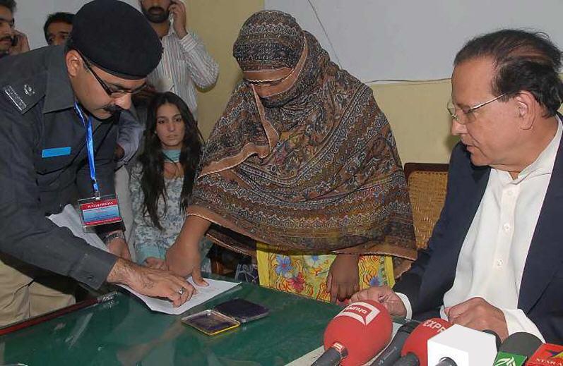 سنائی گئی، اس کی داد رسی کیلیے پہلے پوپ بینیڈکٹ نے اپیل کی، پھر گورنر پنجاب اس عورت سے جیل میں ملے۔ اس کے بعد امریکہ نے اس عورت کو بمع خاندان کے شہریت دینے کا اعلان کیا اور اب وہ عورت امریکہ کوچ کرنے کیلیے اسلام آباد پہنجائی جا چکی ہے۔