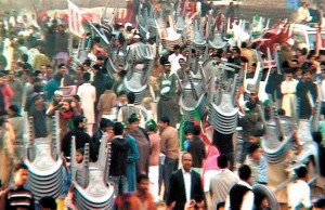 قصور میں تحریک انصاف کے جلسے کے بعد سامعین چلسے میں لگائی گئی کرسیاں اپنے ساتھ لے گئے۔ کچھ لوگ بینر اور کارپٹ بھی لے اڑے۔ ایک بینر لے کر جانے والے سے پوچھا گیا کہ وہ اس کا کیا کرے گا۔ اس نے کہا وہ لحاف بنائے گا۔