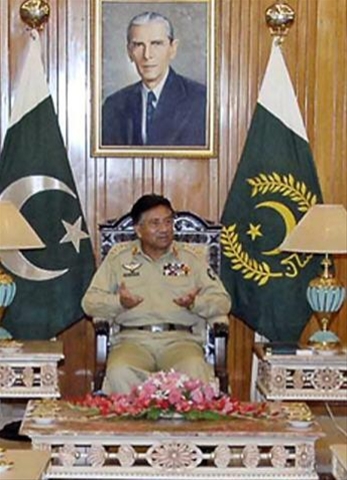 چلیں ابتدا پاکستان کے حکمران جنرل مشرف سے کرتے ہیں۔ تصویر میں جنرل مشرف قائد اعظم کی تصویر کے نیچے وردی میں بیٹھ کر ان کی روح کو تکلیف پہنچا رہے ہیں۔ جنرل صاحب پاکستان کی سالگرہ پر اپنی وردی کا تحفہ پیش کرسکتے ہیں اور چودہ اگست والے دن وردی اتار کر اسی قائداعظم کی تصویر کے زیر سایہ سول کپڑوں میں قوم سے مخاطب ہو کر قائد اعظم کی روح کو خوش کرسکتے ہیں۔