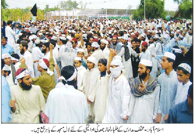 اب تو ہر جمعہ کے دن نمازی مسجد کے آس پاس جمع ہوتے ہیں اور نمازِ جمعہ کی اجازت نہ ملنے پر مسجد کے باہر نماز ادا کرنے کے بعد احتجاج کرتے ہیں۔ حکومت کیلیے لال مسجد کا مسئلہ اسی طرح وبالِ جان بن سکتا ہے جس طرح چیف جسٹس کی معطلی بنا تھا۔ لال مسجد کے کھولنے میں تاخیر کے بھی حکومت کو وہی نقصانات جھیلنے پڑیں گے جو چیف جسٹس کی بحالی میں تاخیر کے جھیلنے پڑے۔
