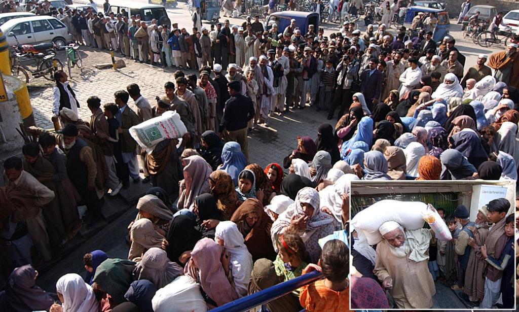 اس تصویر میں دیکھیے کس طرح خواتین و حضرات آٹا لینے کیلیے یوٹیلٹی سٹور کے باہر لائنوں میں کھڑے ہیں۔ ہمیں تو بھٹو دور کے راشن ڈپوؤں سے آٹا، گھی اور چینی لینے کیلیے قطاروں میں کھڑے ہونے کا زمانہ یاد آگیا ہے۔ تب تو بھٹو کا کہنا تھا کہ مشرقی پاکستان کی علیحدگی کے بعد ملک کا یہ حال ہوا ہے۔ مگر پچھلے آٹھ سال میں صدر مشرف اور شوکت عزیز معاشی ترقی کا ڈھنڈورا پیٹتے رہے ہیں۔ کیا اس ترقی کے یہی نتائج ہیں کہ لوگ آٹے کو بھی ترسنے لگیں؟ یہ کیسی ترقی ہے